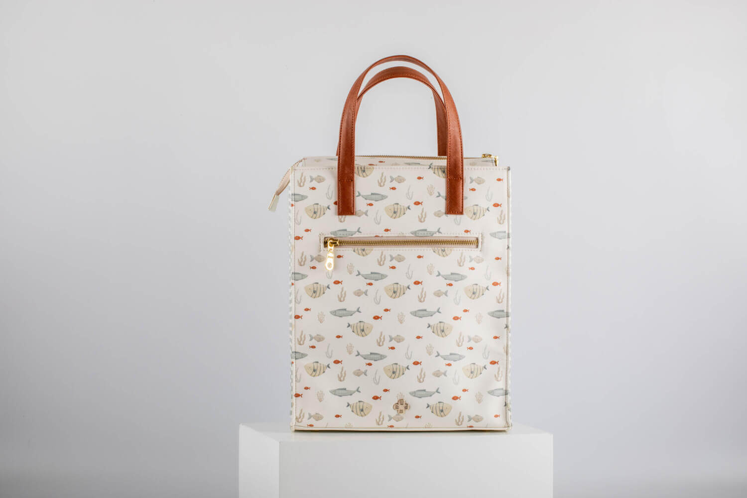 Introducing our fun Underwater Wonderland print everyday bag. Whether heading to the garden, classes, or just out and about, this spacious bag is perfect for organizing lunch items and carrying smaller toys or trinkets. Customize it with a free monogram to give it a personal touch, making it not just practical, but uniquely theirs.