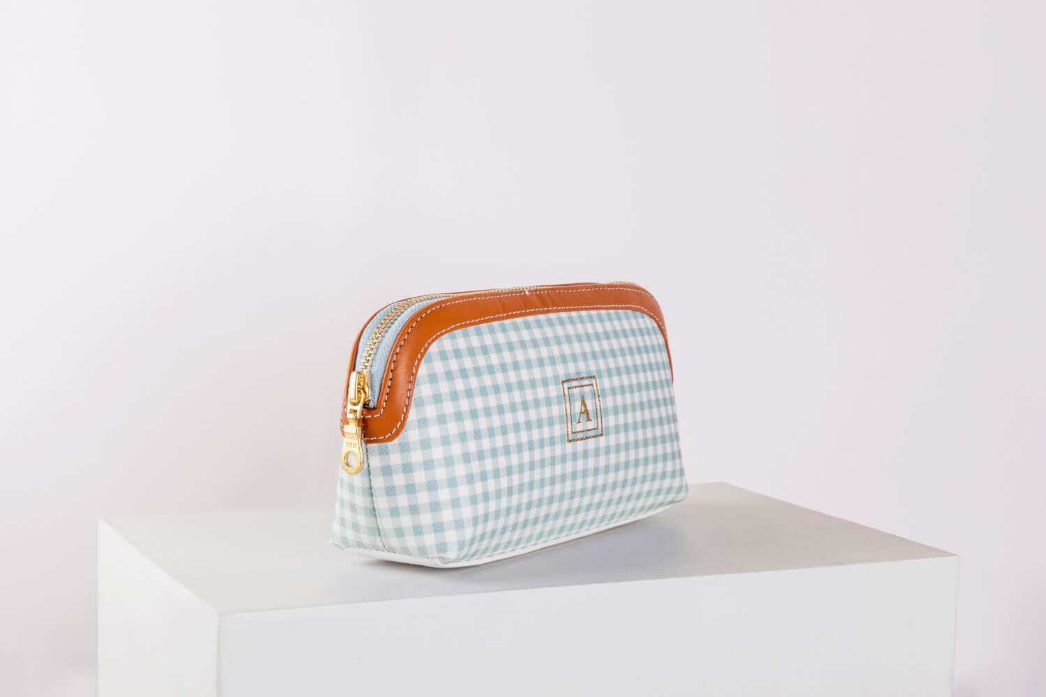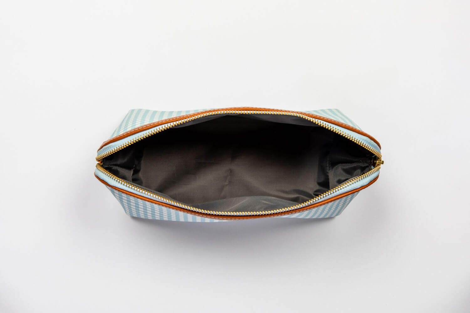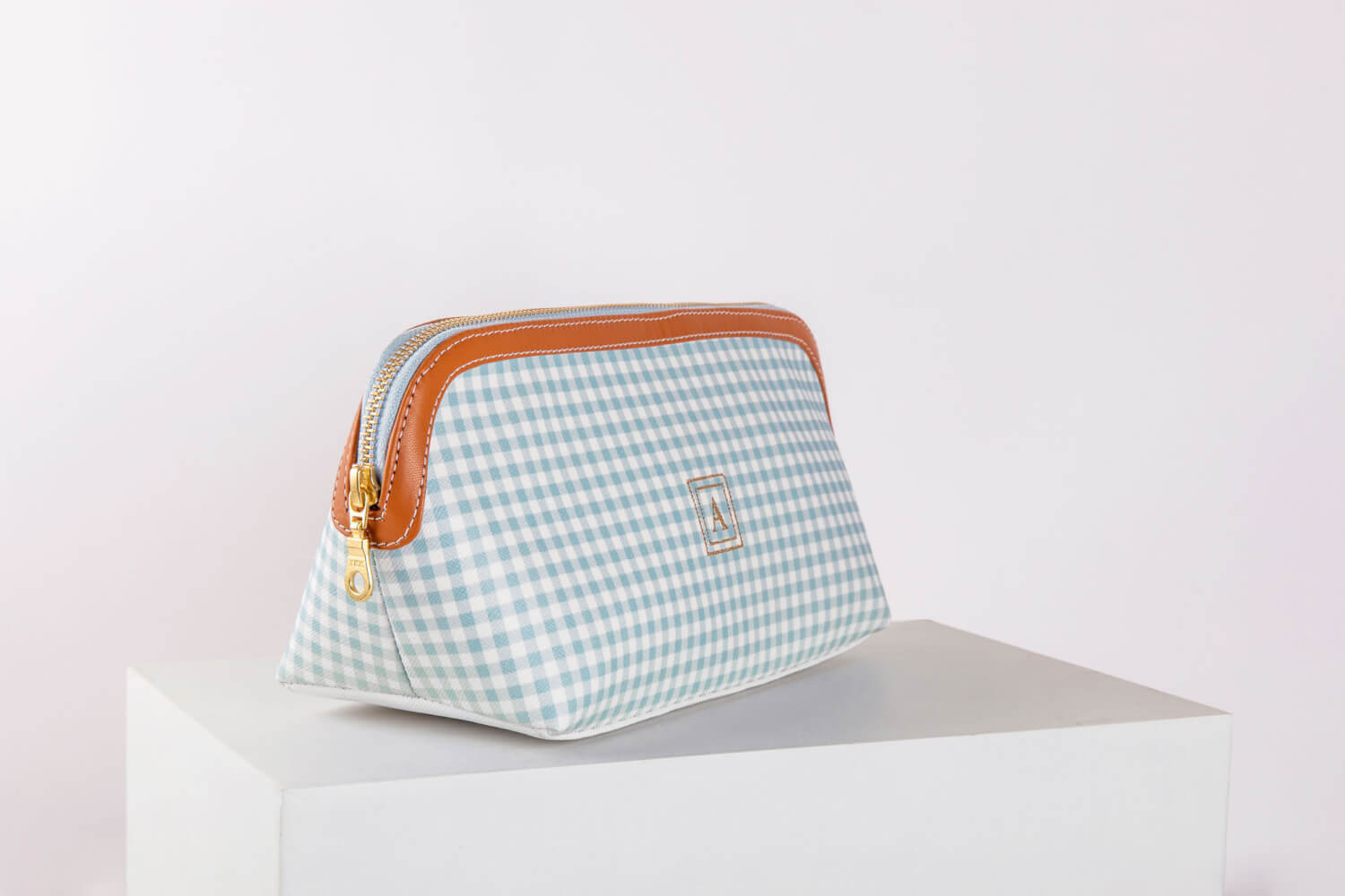 Arrange all your makeup and cosmetics in this wide base pouch. It comes in a pair of two sizes, which you can alternate between for travel and everyday use. Add a personal touch to your pouches with a customized monogram, free of cost.