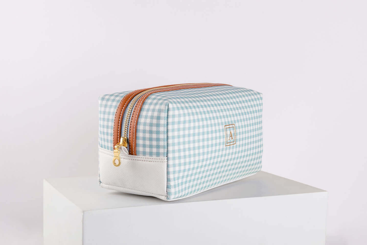 This duo is ideal for storing all your travel essentials. Shampoos, lotions, perfumes or any toiletries fit easily inside the bigger one, while the smaller one keeps your additional basics close at hand. Add a personal touch to your pouches with a customized monogram, free of cost.