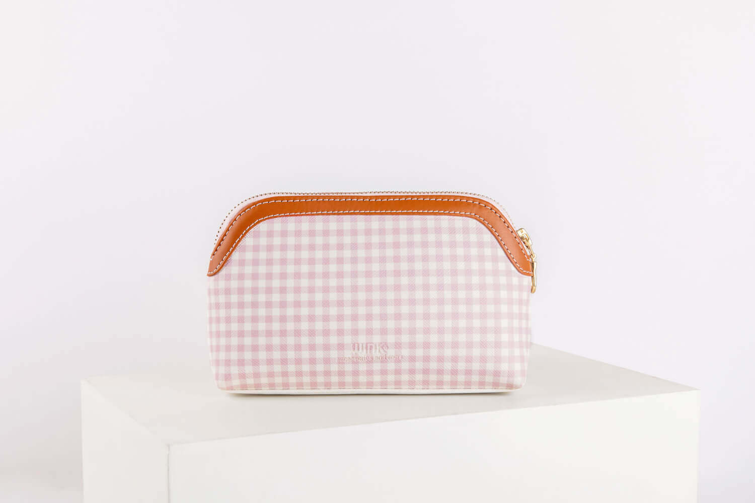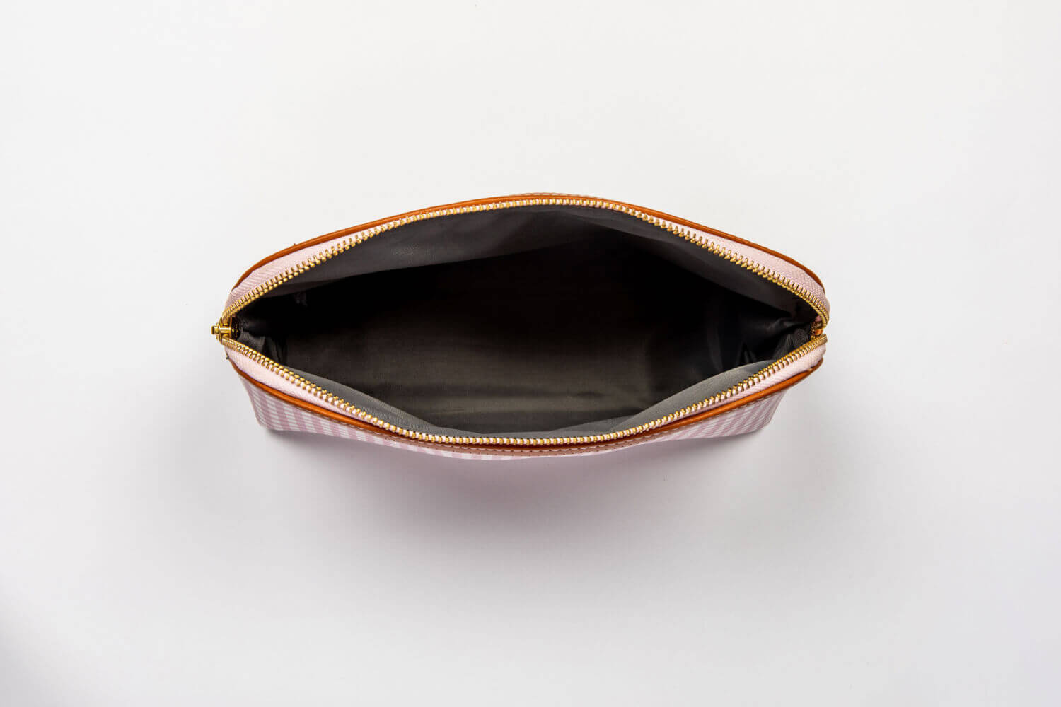 This beautiful mini-oval, all purpose pouch is perfect for storing your everyday basics. Gone are the days where you’d  have to find that lipstick or those sunglasses- it’ll all be in here! Add a personal touch to your pouch with a customized monogram, free of cost.