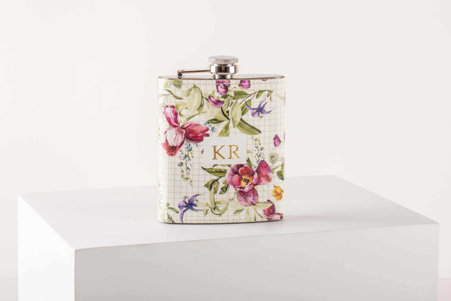 Hold up to 7 oz. of your favourite liquor in this sleek hip flask. Customize the monogram on it, free of cost.