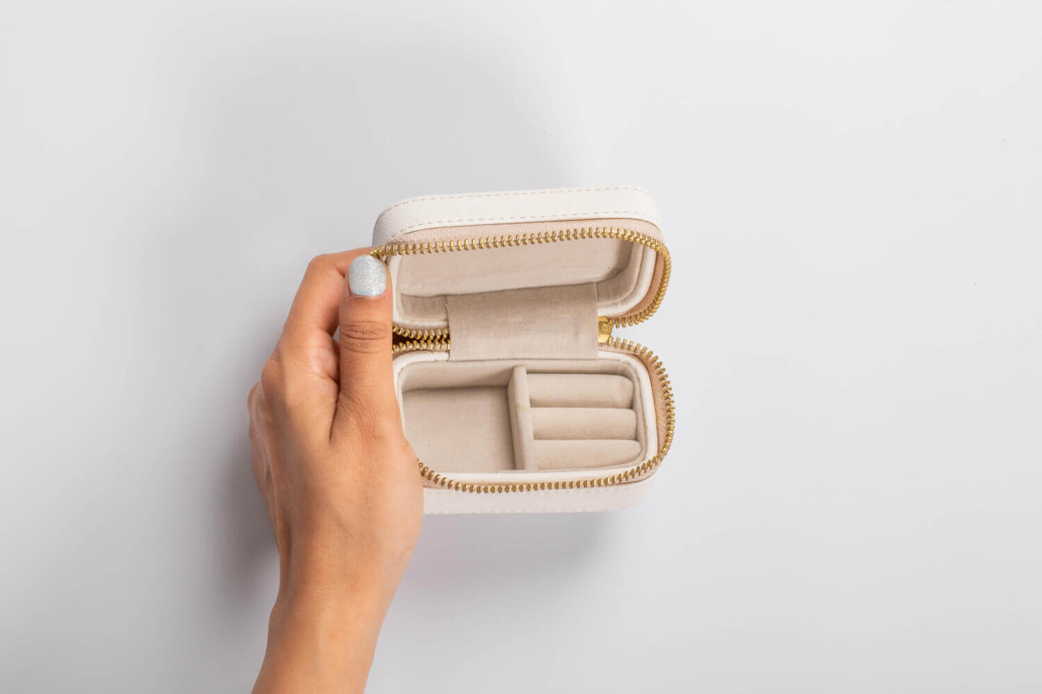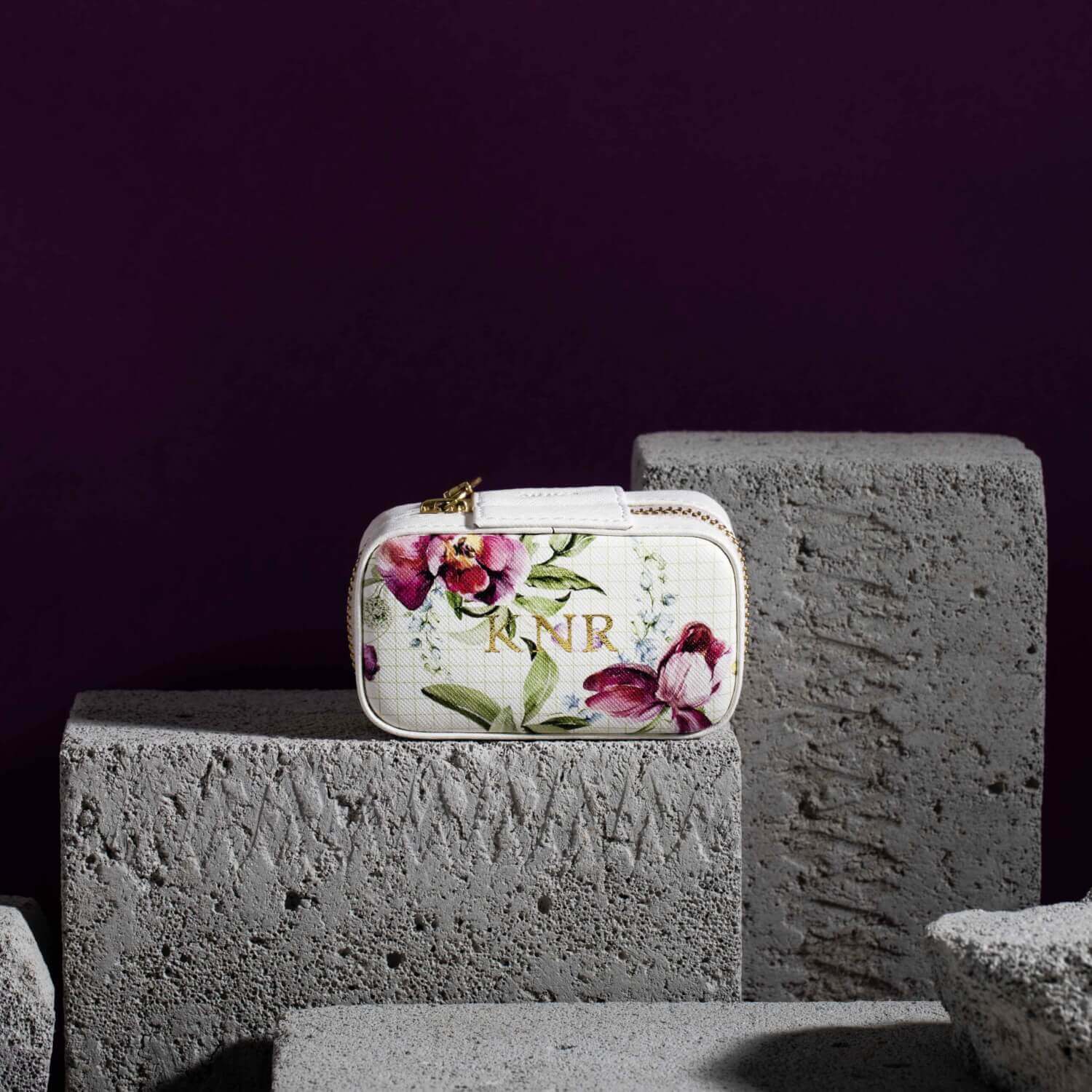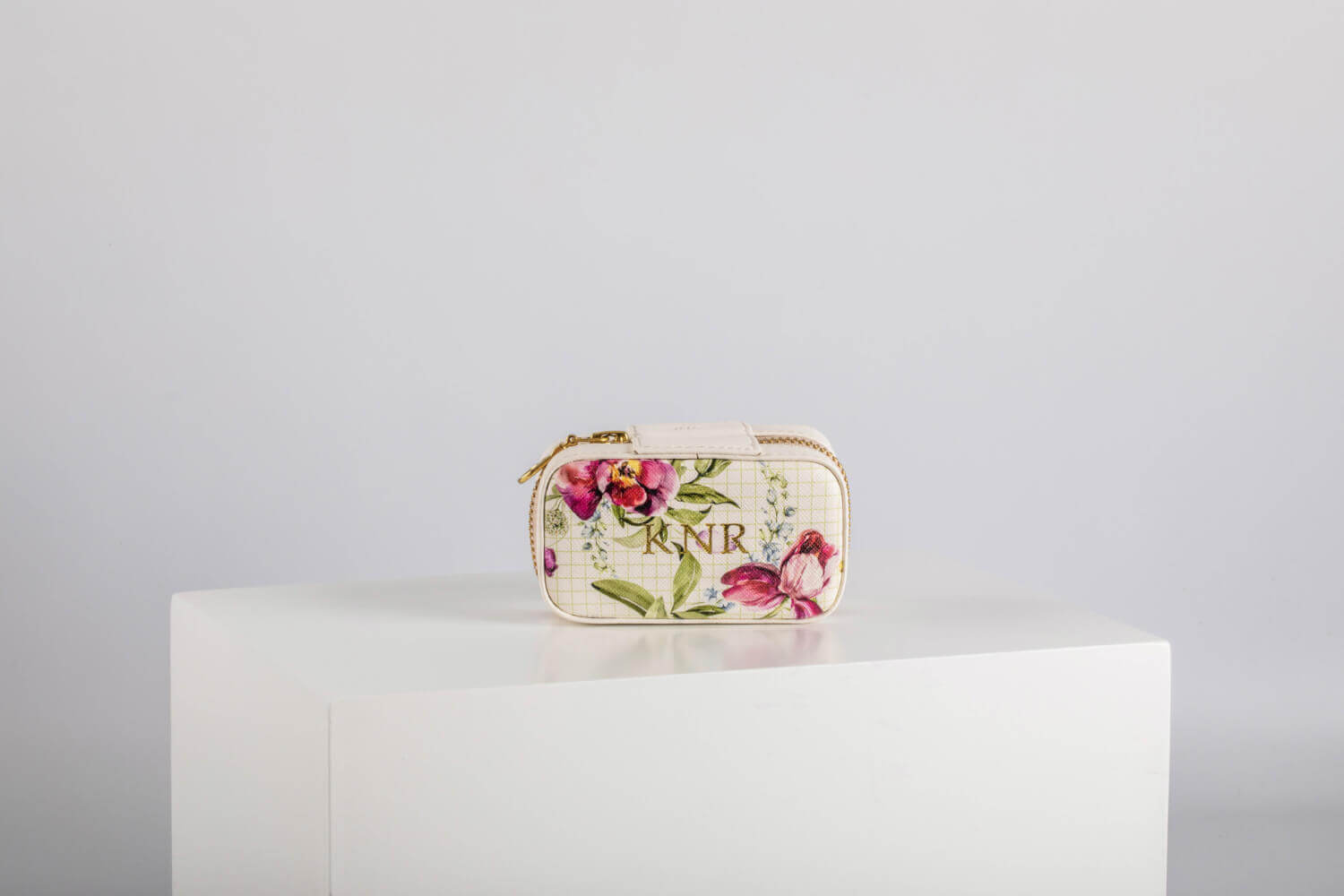 Keep your everyday treasures close with this compact jewelry case from the Sangria collection. Designed with a delicate pressed flower print, this small floral jewelry box is perfect for storing your rings, earrings, or keepsakes—whether on your bedside table or tucked into your handbag for daily use. Its secure, organized interior makes it easy to access your favorite pieces anytime. Add a personal touch with free custom monogramming, making it a beautifully functional piece for travel or home