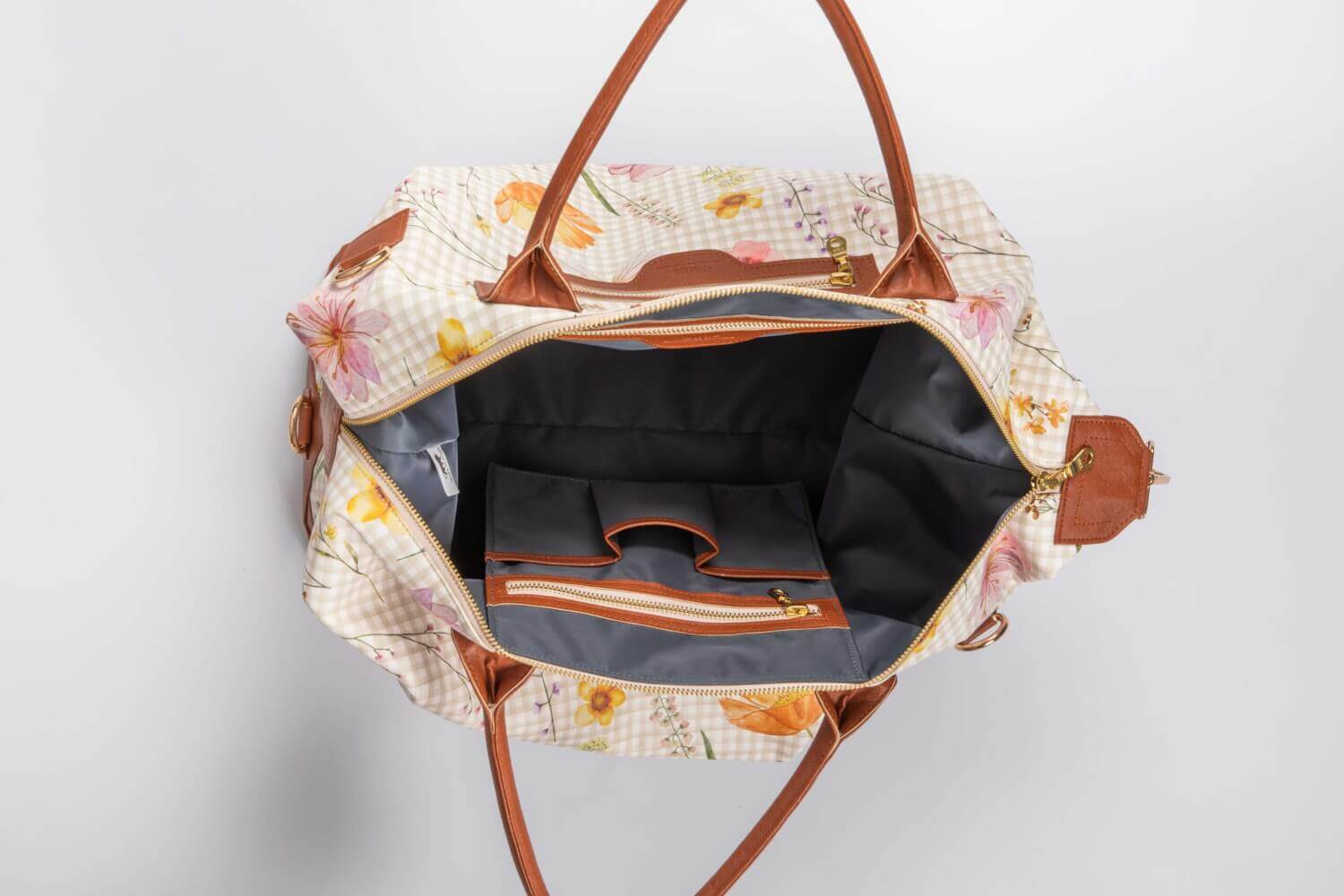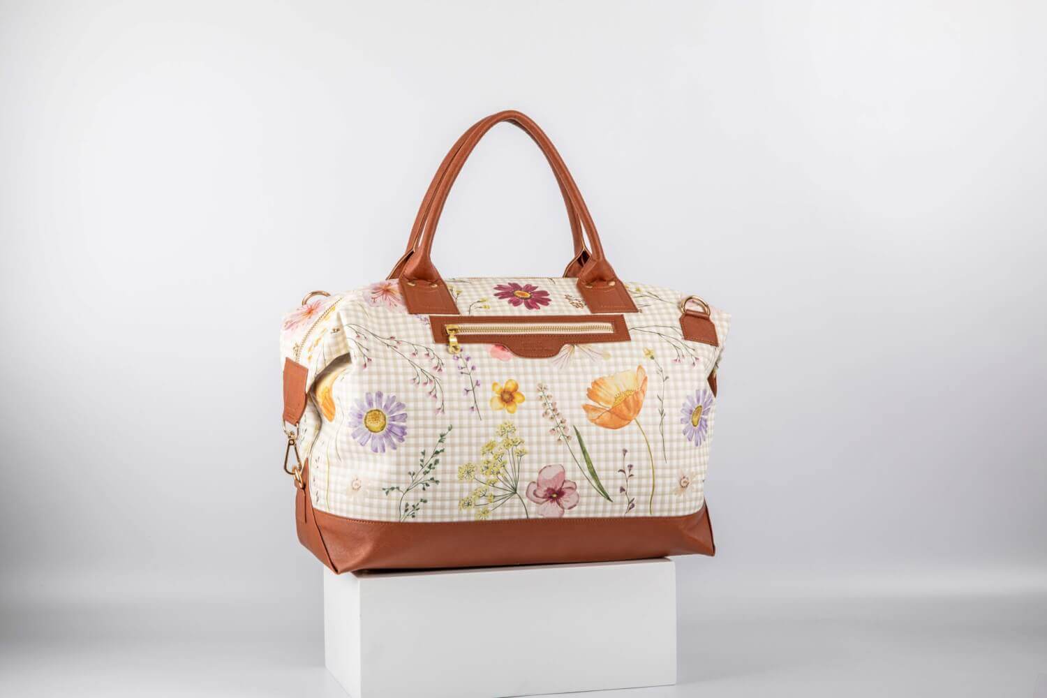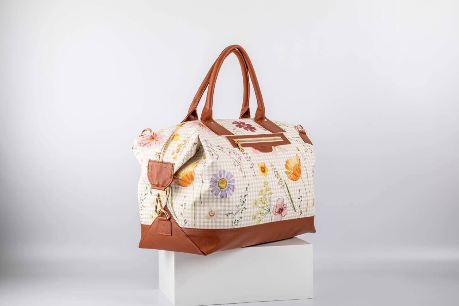 Let your travels bloom with this nature-inspired floral duffle bag that’s as functional as it is timeless.