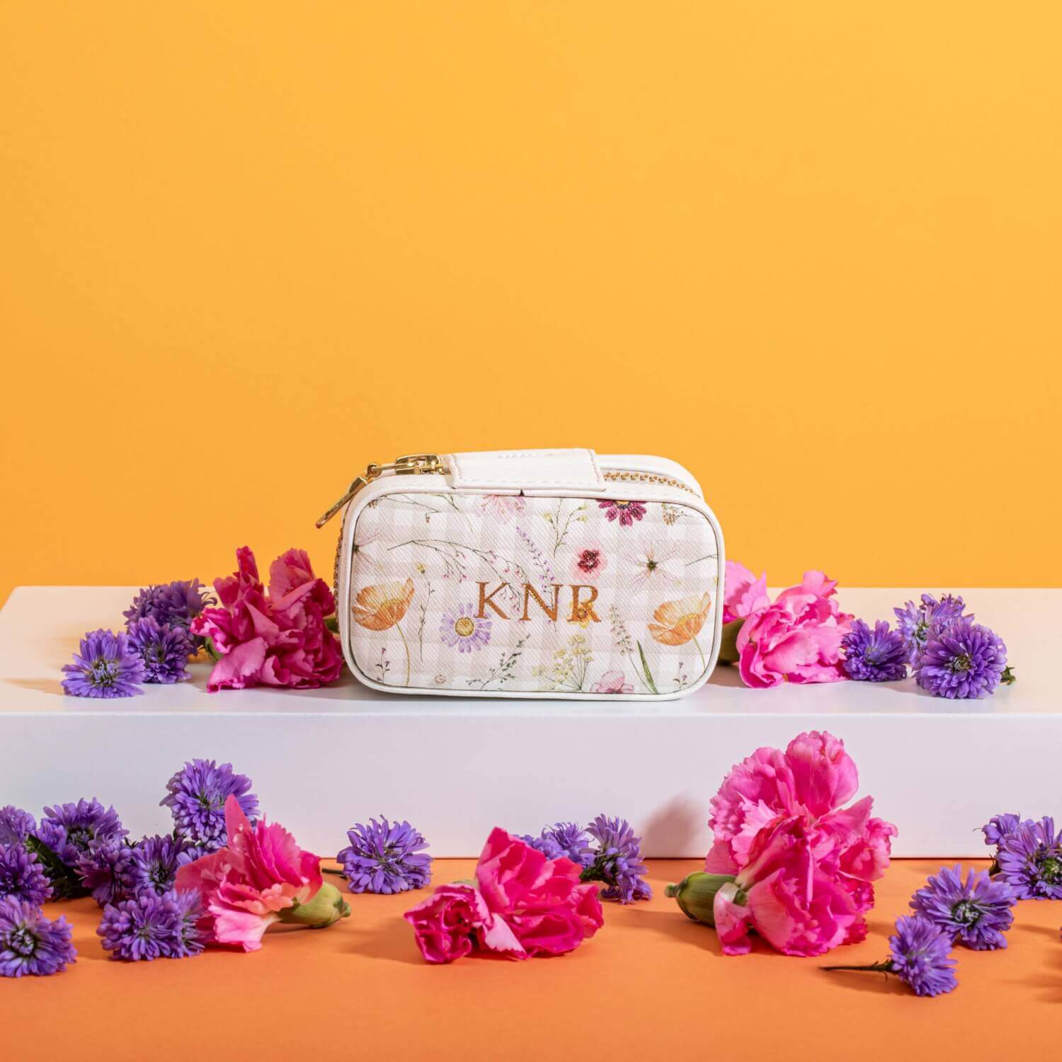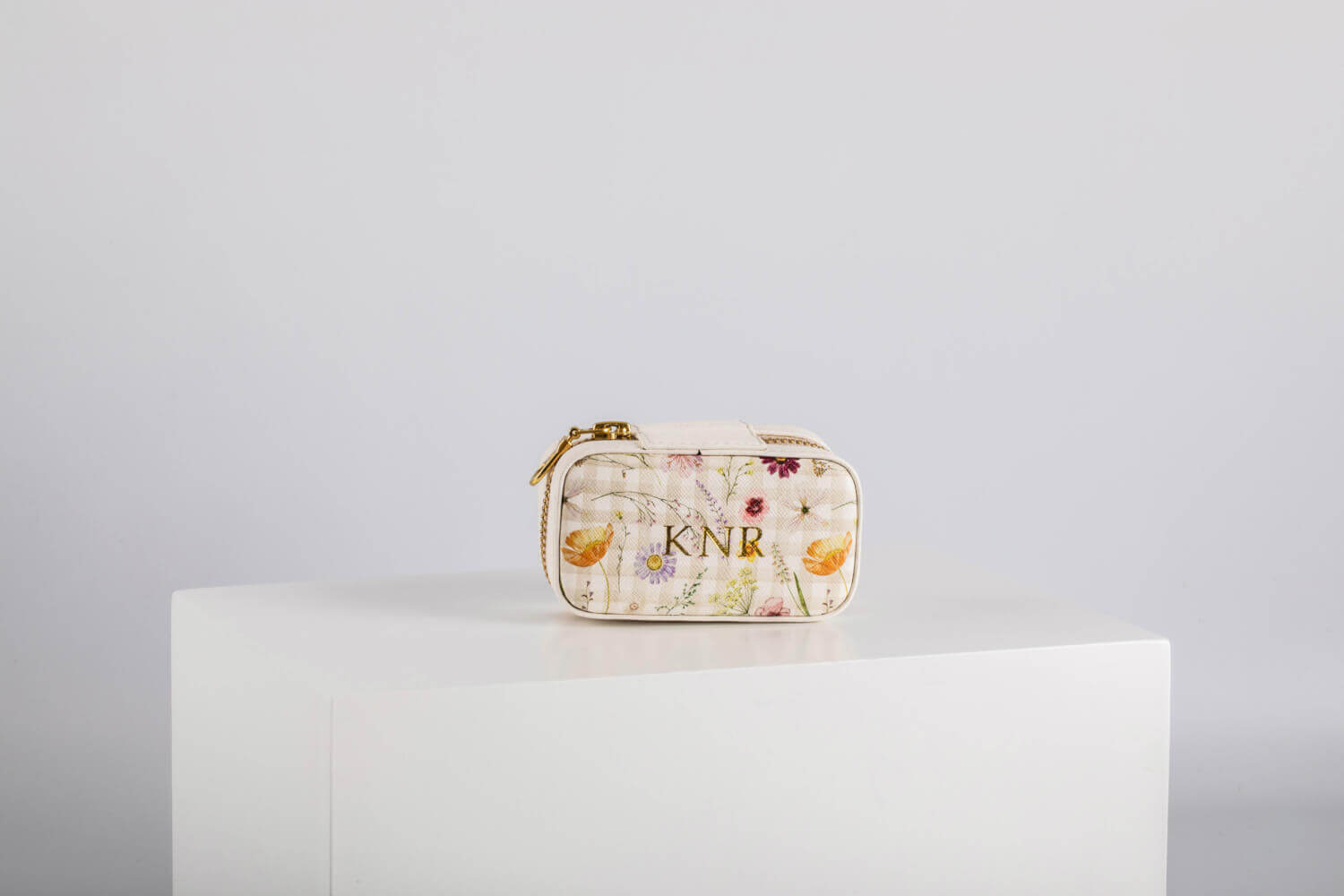 Keep your everyday treasures close with this compact jewelry case from the Pressed In Time collection. Designed with a delicate pressed flower print, this small floral jewelry box is perfect for storing your rings, earrings, or keepsakes—whether on your bedside table or tucked into your handbag for daily use. Its secure, organized interior makes it easy to access your favorite pieces anytime. Add a personal touch with free custom monogramming, making it a beautifully functional piece for travel or home