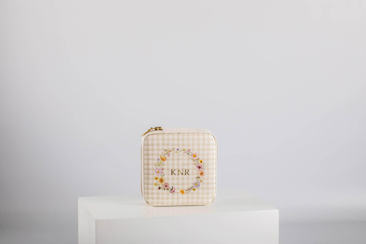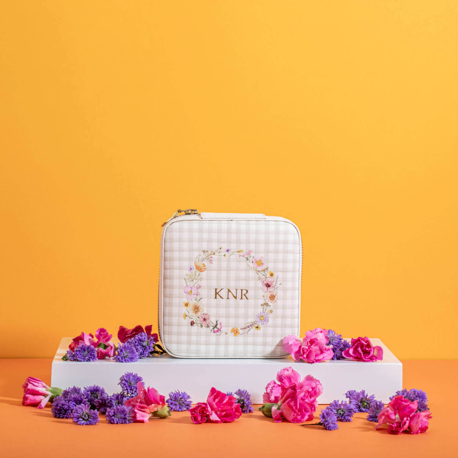 Part of the Pressed In Time collection, this floral jewelry pouch is thoughtfully designed to keep your favorite pieces safe, organized, and easy to access while you travel. Spacious yet compact, it’s perfect for storing rings, earrings, necklaces, and other delicate trinkets. The charming floral design, inspired by pressed flowers, adds a touch of vintage elegance to your packing essentials. Personalize it with a free custom monogram to make it uniquely yours — the perfect blend of beauty and function for every journey.